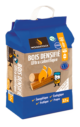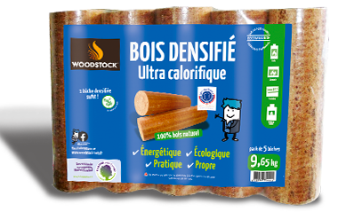 Les bûches Woodstock bois densifié sont fabriquées à partir de sciures et copeaux de bois non traité, densifiés sous haute pression. Elles s’utilisent en remplacement ou en complément des bûches de bois traditionnelles, dans tout type d’appareil de chauffage au bois. La haute performance énergétique des bûches densifiées génère une chaleur immédiate et régulière pendant environ 1h.