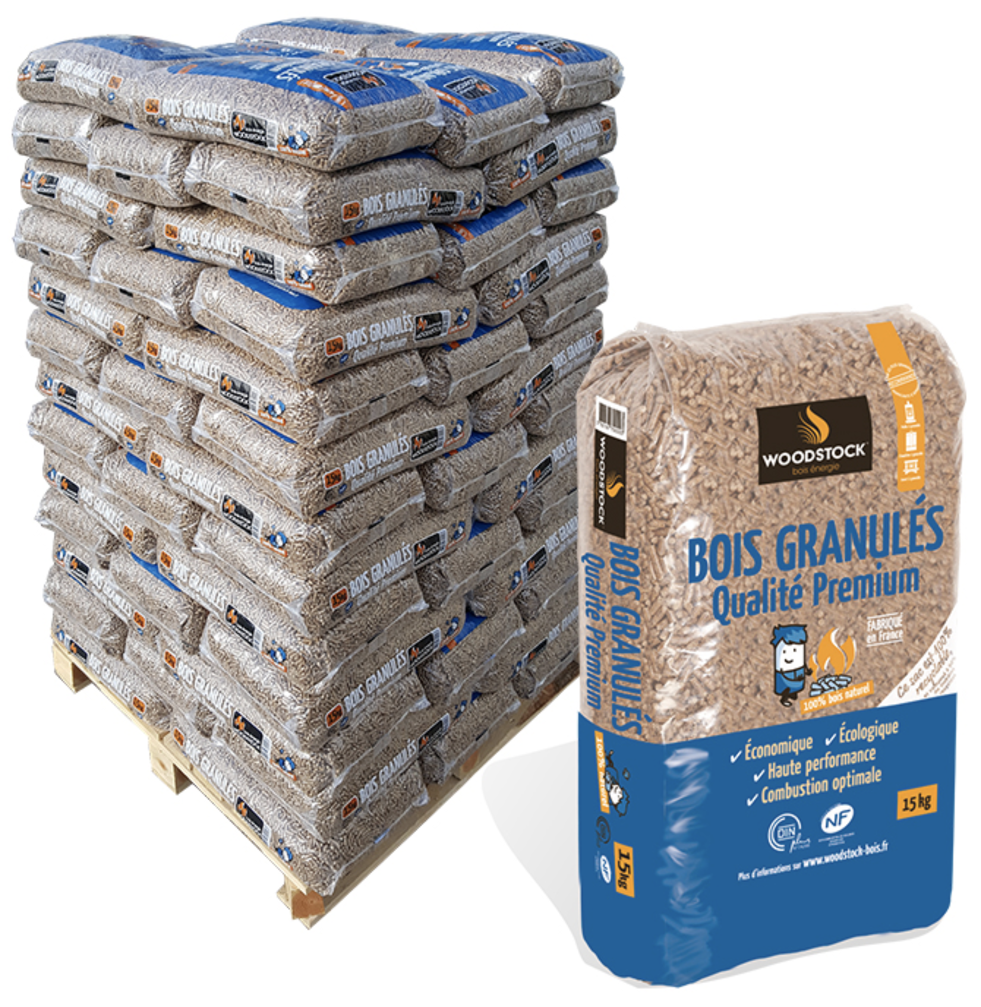 Granulés de bois WOODSTOCK – Palette de 66 sacs de 15kg